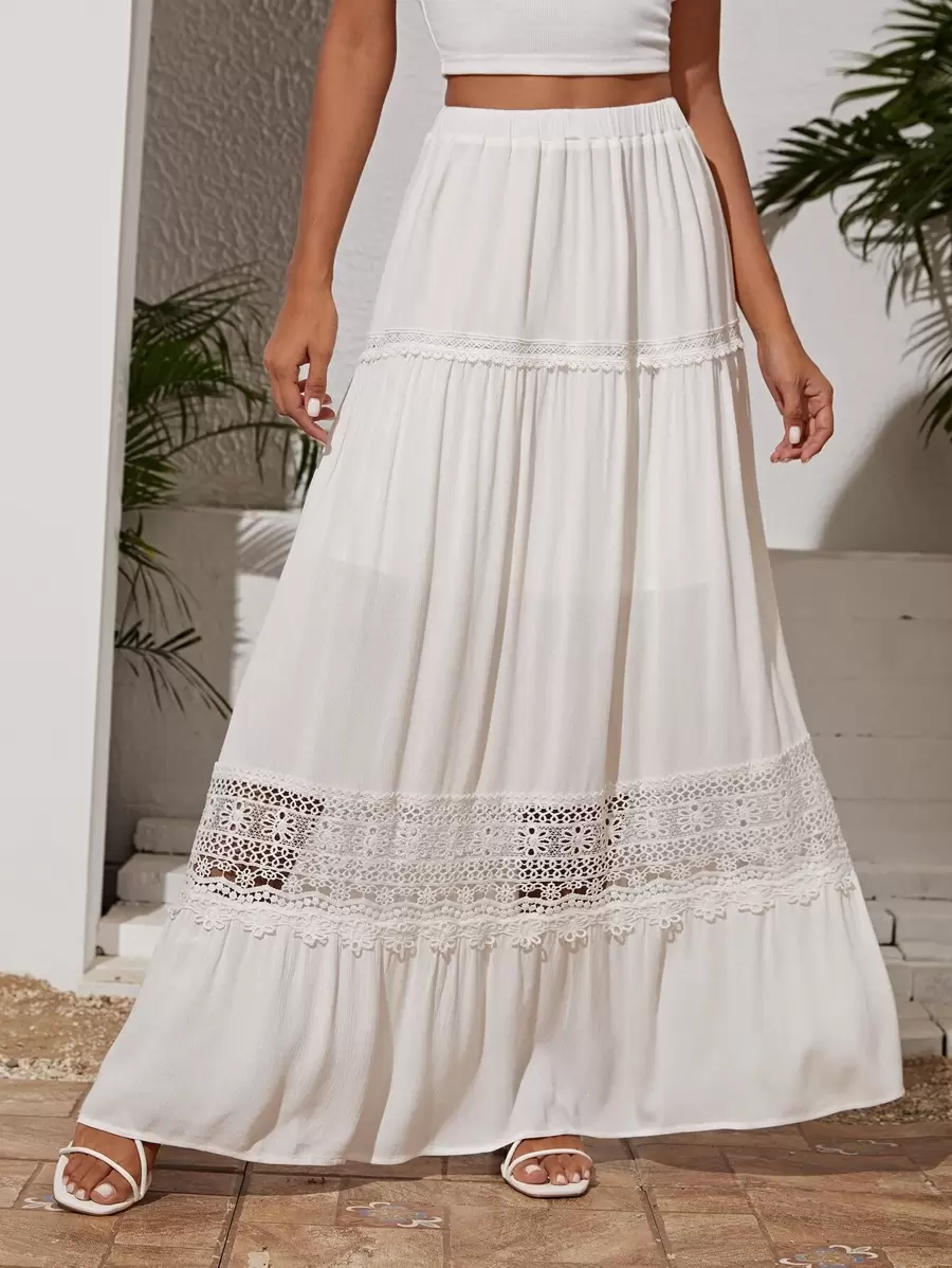 SHEIN VCAY Falda Con Dobladillo De Volantes Y Detalle De Encaje Guipure