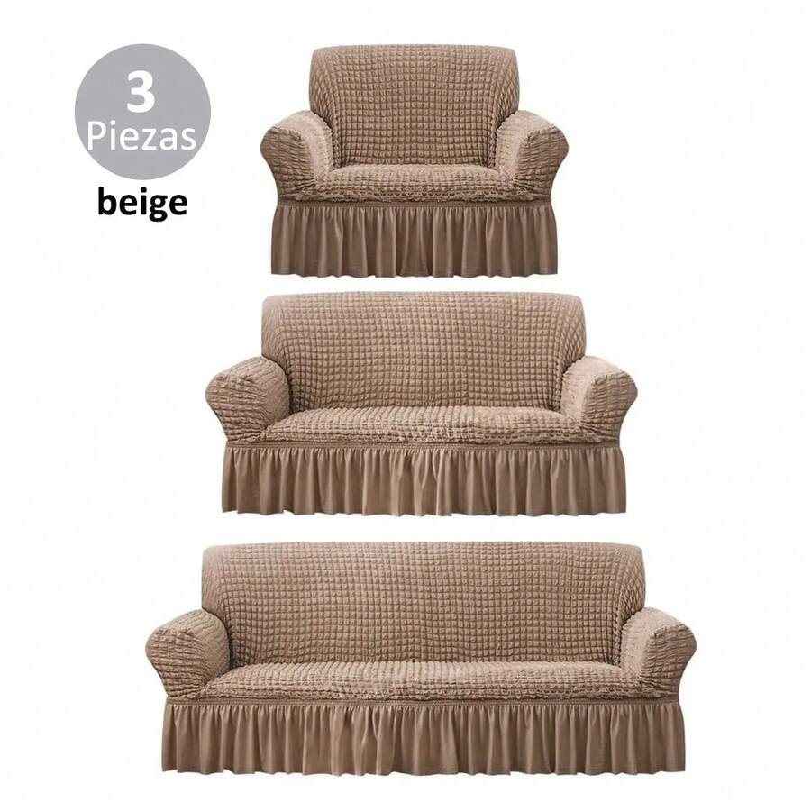 3 Piezas Funda para Sofá con Volante Elástica para Sofá de 1/2/3 Plazas Antideslizante y Lavable Protector Resistente al Desgaste y Antipolvo Decoración del Hogar Forros para Sillones