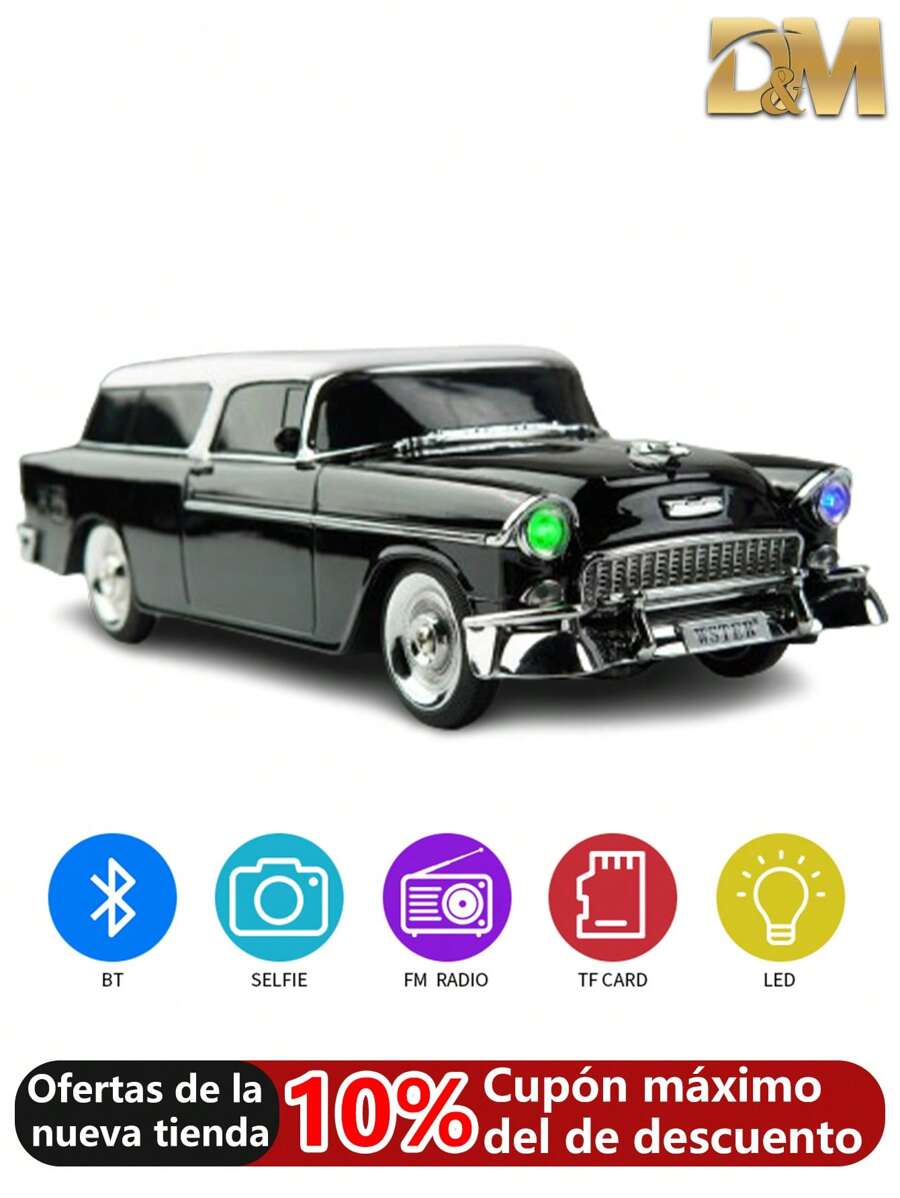 Bocina inalámbrica con iluminación led Bocina Forma Carro clásico Con Luz USB BOCINA Bluetooth Color Negro Conexión Bluetooth Con Radio fashion Bocina inalámbrica con iluminación Led Speaker