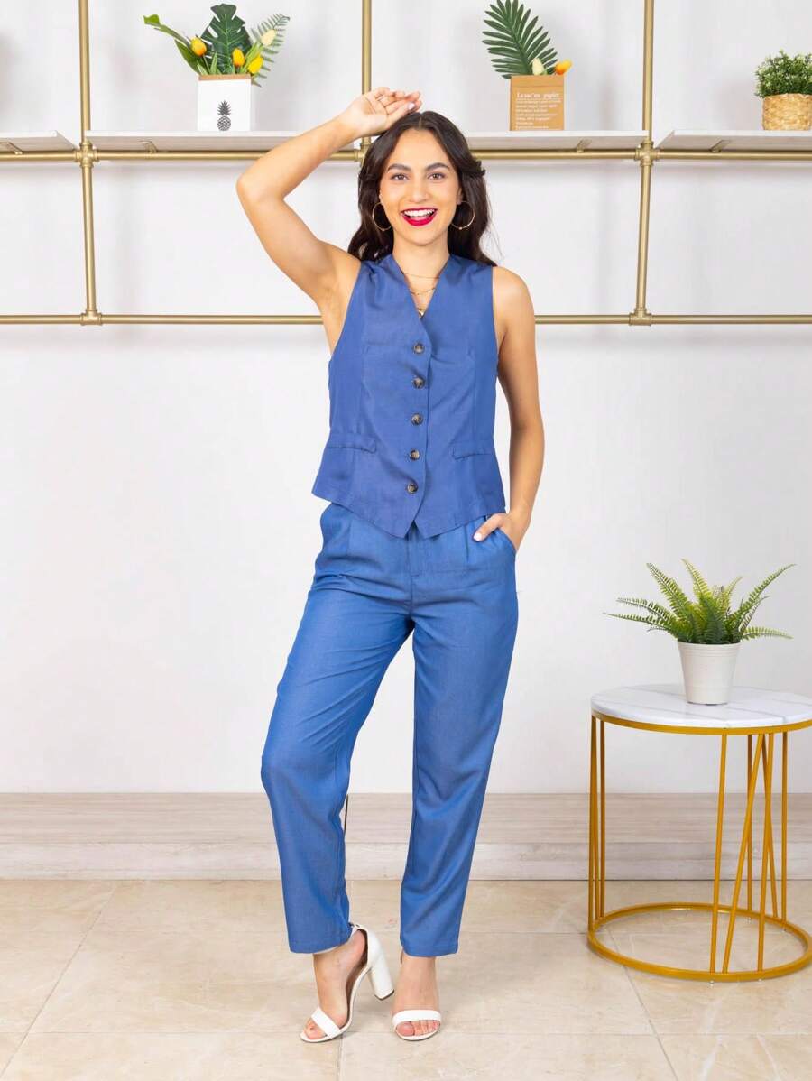 Pantalon Dama recto con bolsillos .
