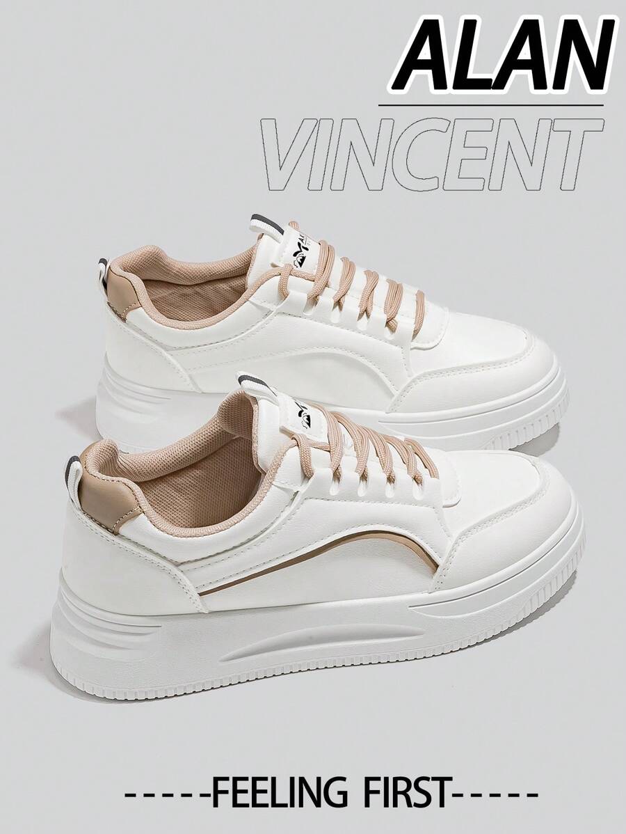 Alan Vincent Zapatos nuevos para mujeres primavera 2025 - Zapatillas deportivas bajas con cordones, cómodas y versátiles, en color blanco y marrón para combinar, apropiadas para ir de compras