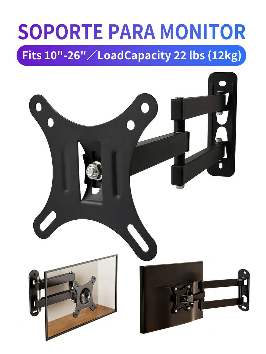 Soporte de pared para TV/Monitor,Soporte de brazo de extensión articulado para TV giratorio inclinable para pantalla plana LED LCD,soporte de pared móvil de 3 brazos giratorio y retráctil para TVs de 10 a 26 pulgadas,Apto para Pantallas de hasta 12KG.