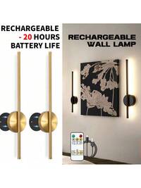 1/2 piezas Lámpara de pared, Decoración de pared para fondo de TV, Luz de dormitorio, Luz de sala de estar, Lámpara de pared moderna, Con control remoto, Lámpara de pared rectangular - Batería recargable de alta capacidad, Cable de carga Tipo C de 50 cm, Instalación magnética, Regulable y ajustable de temperatura de color, Adecuado para dormitorio, decoración de pared, estudio, sala de estar, decoración del hogar, regalo festivo y iluminación de escaleras #2 Más vendidos