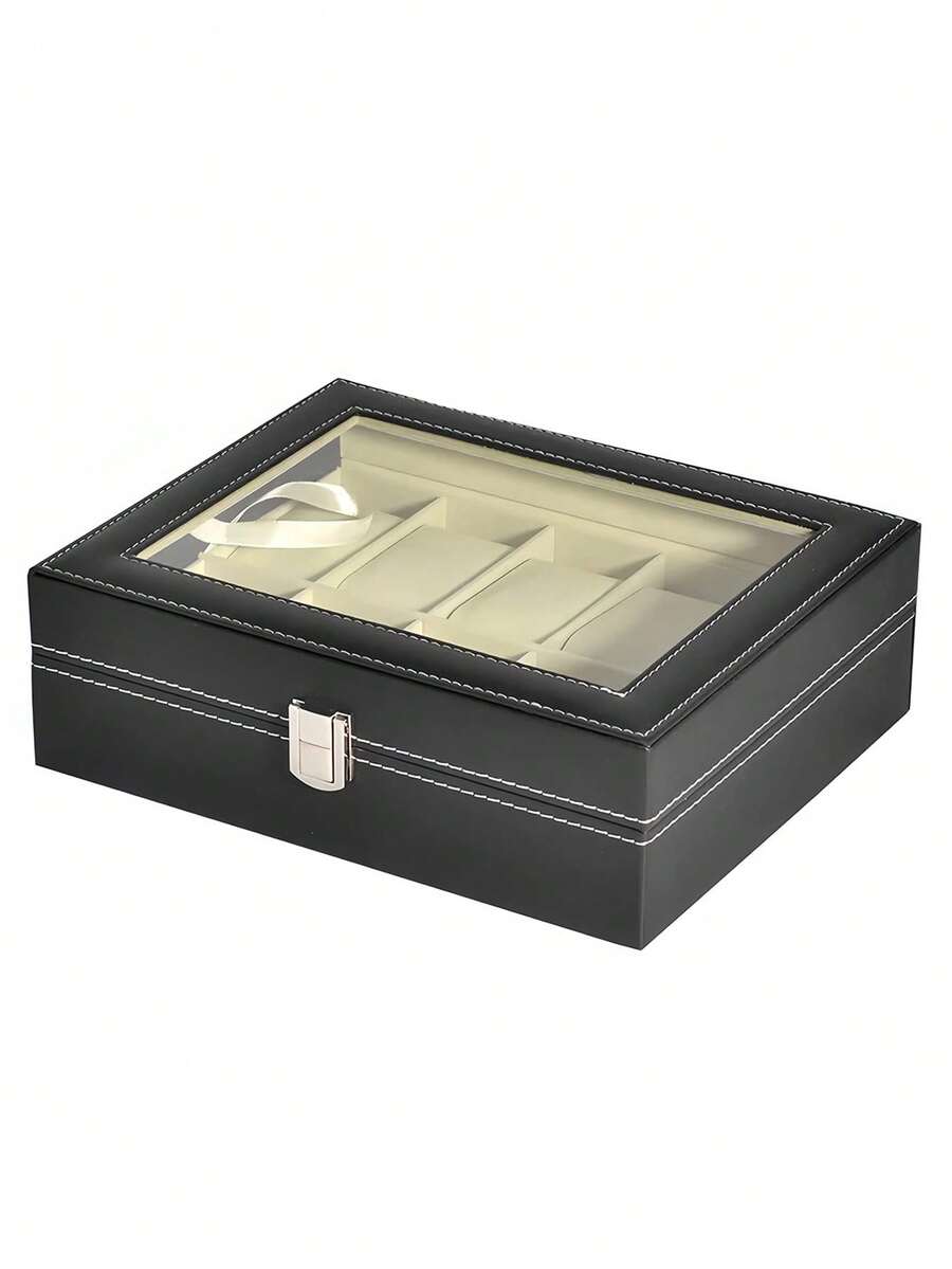 Organizador de relojes diez compartimentos tapa transparente visión amplia exhibidor de relojes premium almacenamiento elegante protección reloj fácil acceso diseño moderno