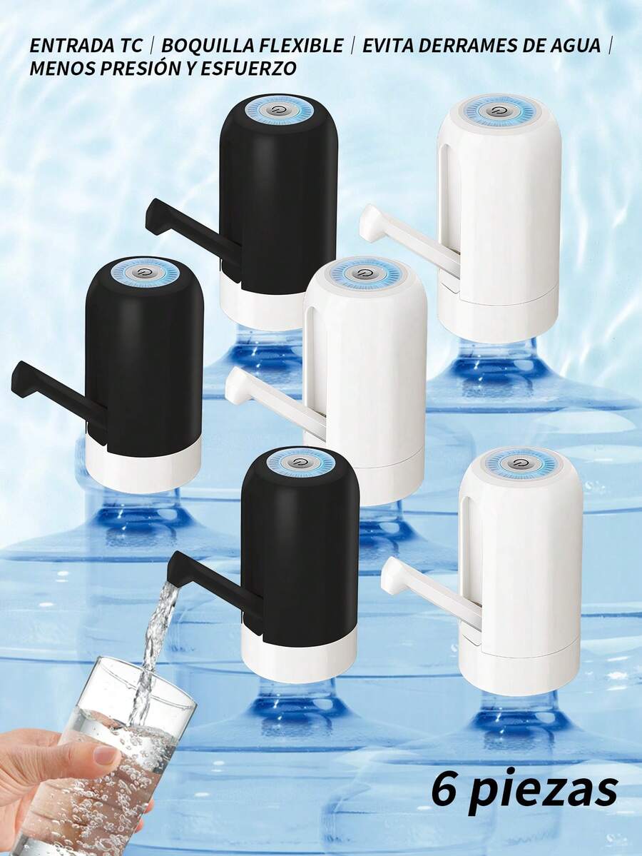 6 piezas Dispensador de Botella de Agua Universal,Bomba Automática Plegable,Mini bomba de agua eléctrica plegable automática y de varios engranajes, dispensador de agua portátil recargable por USB-C.