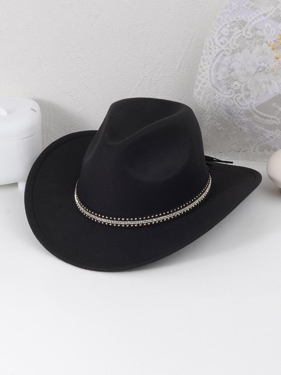 Estilo boho - 1 pieza Elegante y de moda sombrero de vaquera negro tejido para mujer con borde ancho, adecuado para uso diario
