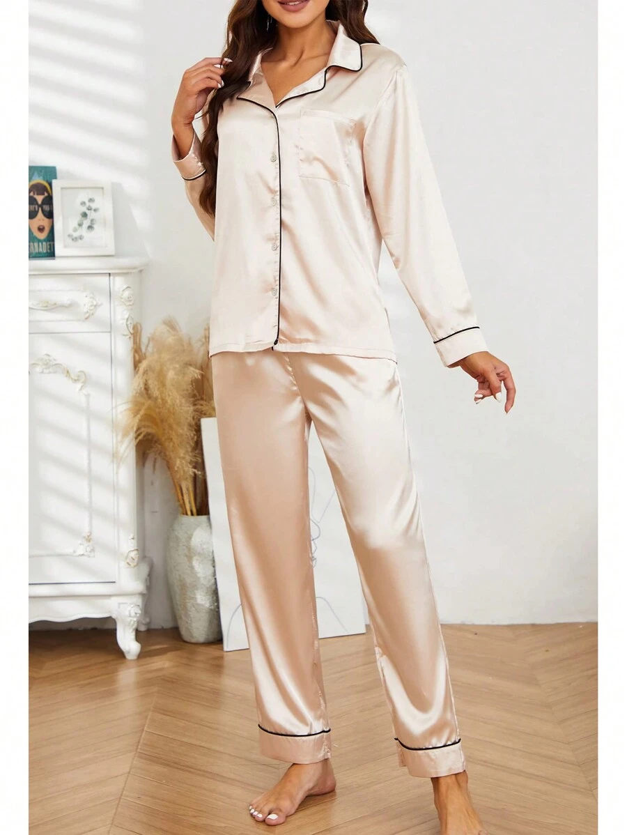 2 Piezas Conjuntos de Pijamas para Mujer de Satén de Seda y Pantalones de Mujer, Pijama de Dos Piezas Pijama con Botones, pijamas de mujer, pijama dama seda, pijamas para pareja, pijama de seda mujer, pijamas familiares, pijamas en satin, pijamas completas
