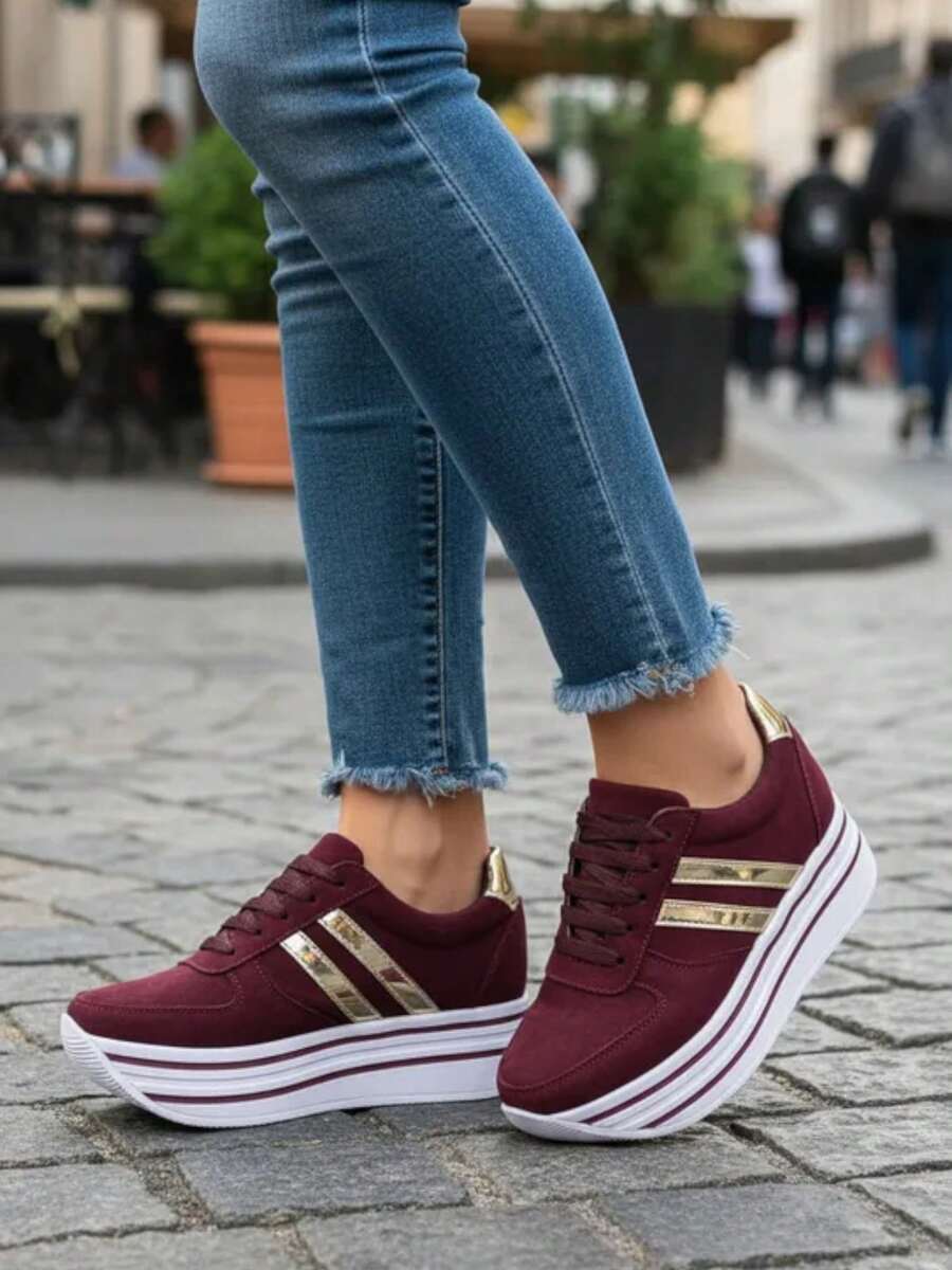MUJER ZAPATILLAS DEPORTIVAS CON CORDONES TENIS DE PLATAFORMA VINO