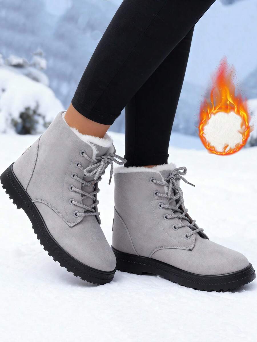 Botas de nieve ligeras, gruesas y cálidas para mujer, de caña corta, forradas de felpa para invierno, de punta redonda, tallas grandes, resistentes al frío, planas, antideslizantes, con forro de felpa, tallas del 35 al 44