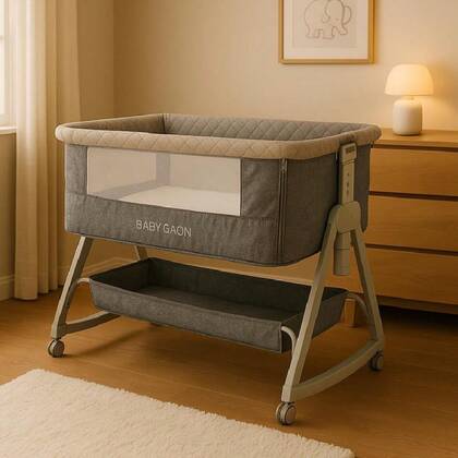 Cuna Plegable para Bebe Mecedora con Estructura de Acero Desmontable - Moises Colecho Cambiador de Altura Ajustable Multifuncional y Ruedas con Freno,26911191