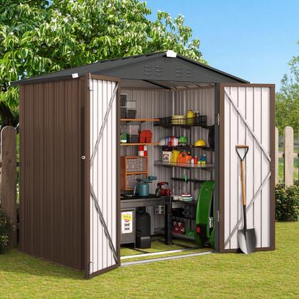 Capanno da Giardino, Deposito Attrezzi in Acciaio Zincato con Doppia Porta Scorrevole e 4 Prese d'aria,200*127*189cm