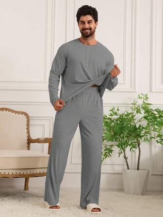 DAZY Conjunto de ropa de estar en casa informal para hombres con parte superior a rayas y pantalones de cintura elástica de unicolor, ropa de otoño e invierno