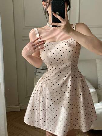 DAZY Vestido casual de verano para mujer con cintura ceñida y estampado de lunares