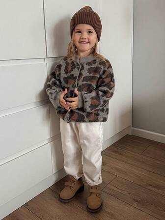 DAZY Chaqueta de punto vintage con estampado de leopardo para niñas, otoño/invierno