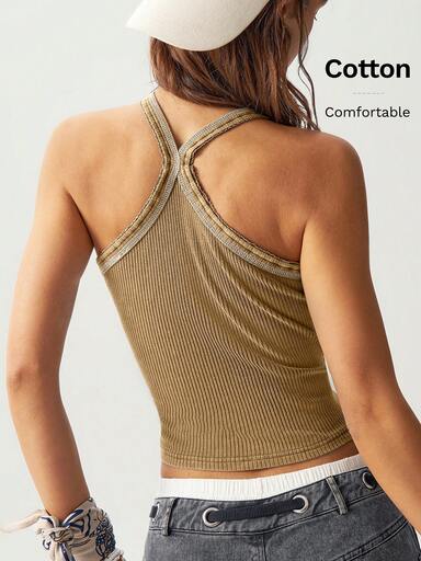 Bohemela Camiseta de tirantes de mujer de punto de unicolor y ajuste ceñido