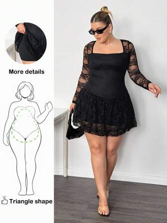 Hourglow Vestido de manga larga transparente de hombros descubiertos de unicolor y minimalista para mujer de talla grande, para uso diario, para silueta de reloj de arena y de reloj de arena