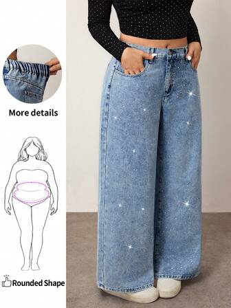 Enliva Pantalones holgados con diamantes lavados y aplicaciones, estilo veraniego, fluidos, Y2K, streetwear, para graduación, aeropuerto, estilo old money, talla grande