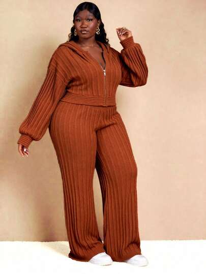 Enliva Conjunto de sudadera y pantalón de chándal para mujer talla grande, sudadera holgada y pantalón de chándal informal, conjunto deportivo casual con detalles de estampado de letras y bolsillos, ropa de otoño e invierno para mujer, CURVE PLUS, para silueta redondeada tipo manzana