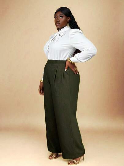 Enliva Pantalones casuales de talla grande de cintura alta, cómodos y de unicolor, de tela elástica para otoño, adecuados para curvas corporales redondeadas, compatibles con la forma del Body redondeado tipo manzana/2026/Año Nuevo