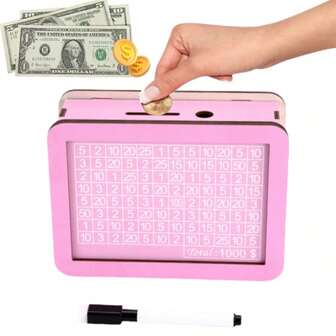 1 pieza Hucha con símbolo de dólar, caja de dinero de madera rosa y azul DIY, reutilizable y escribible. Apta para monedas y billetes, plan de ahorros, regalos para niños y niñas