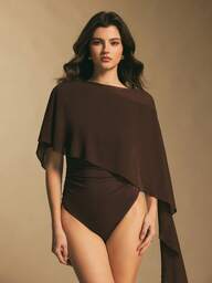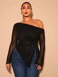 MISSGUIDED Top con cuello asimétrico, cintura fruncida, mangas semi-holgadas para fiesta y glamour otoñal