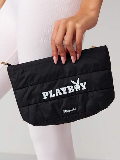 Missguided x Playboy Bolsa organizadora de viaje con cierre de cremallera, acolchada con logo para cosméticos y maquillaje