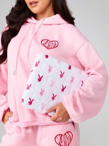 Missguided x Playboy Bolso de portátil de moda con estampado de corazón, funda acolchada para ordenador portátil, estilo kawaii, organizador de viaje de negocios