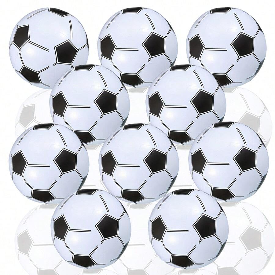 10 piezas/paquete Balones de fútbol inflables de 14.57 pulgadas para deportes acuáticos, balones de fútbol de playa, balones de fútbol para juegos al aire libre, balones de fútbol para decoración de fiestas de playa, ligeros y portátiles, artículos esenciales de playa, accesorios de playa, flotador de piscina