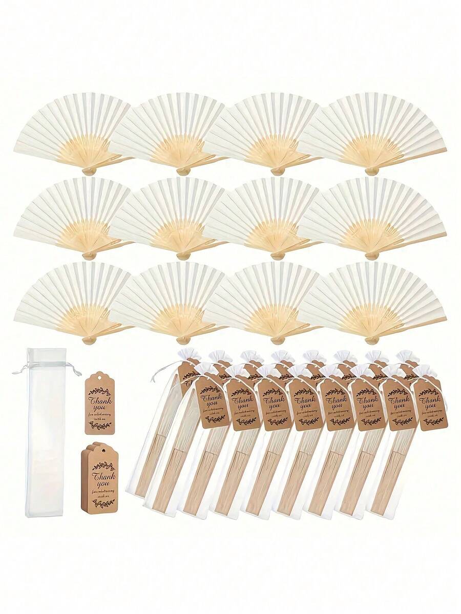 3/15/30 piezas Elegante Set de abanicos blancos, que incluye etiquetas de agradecimiento y bolsas de regalo, abanico de mano de bambú nupcial, adecuado para regalos de damas de honor y decoraciones de boda, perfecto para fiestas y eventos, accesorio de verano perfecto