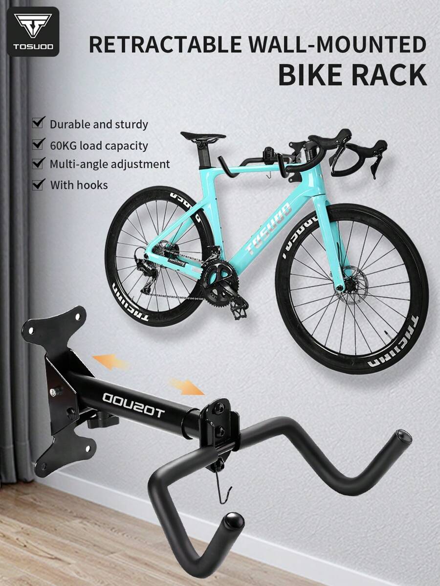 Soporte de pared para bicicleta TOSUOD de uso intensivo - Ganchos ajustables de varios ángulos para bicicletas de montaña/carretera, construcción de fibra de carbono y acero, almacenamiento de bicicletas para interiores/exteriores para garaje, apartamento, hogar