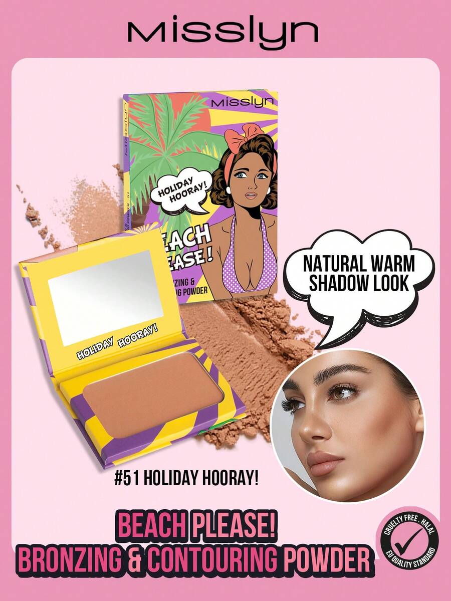 Misslyn ¡Playa por favor! Polvo bronceador de contorneado, polvo bronceador mate, alto poder de color, textura fina y suave, con espejo, polvo bronceador para contornear el rostro, efecto de maquillaje de larga duración, ligero y transpirable, suave y difuminable