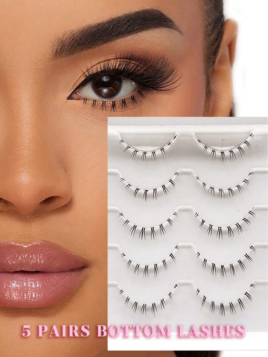 Beauty Showme 5 pares de pestañas postizas de estilo de dibujos animados para la parte inferior, combinación de pestañas superiores e inferiores, rizo J, mink asiático, delineador fino, pestañas inferiores de hebra única, adecuado para Año Nuevo y Navidad
