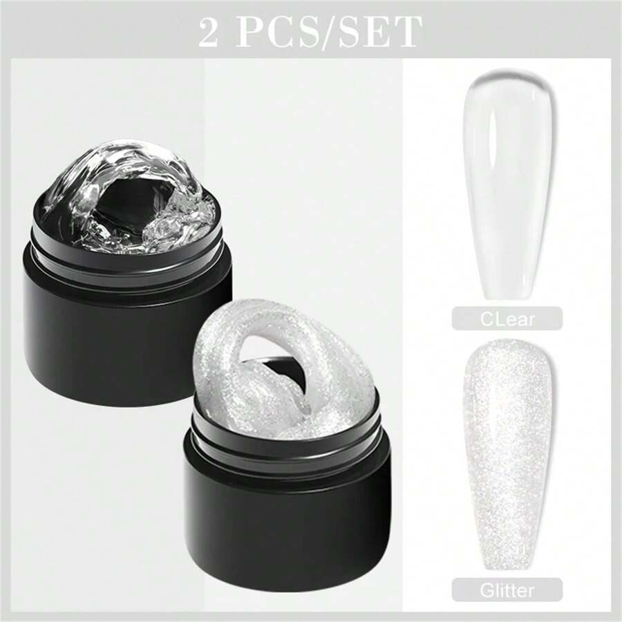 MEET ACROSS Set de 2 piezas de esmalte de uñas de gel con brillo antiadherente, kit de arte de uñas de gel UV desmontable con diseño de tallado 3D, regalo para manicura en casa y salón