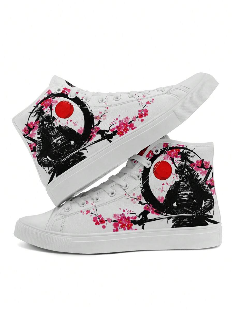 Zapatos de lona impresos japoneses Sakur Samurai para hombre, de gran tamaño, altos, transpirables y livianos, adecuados para exteriores