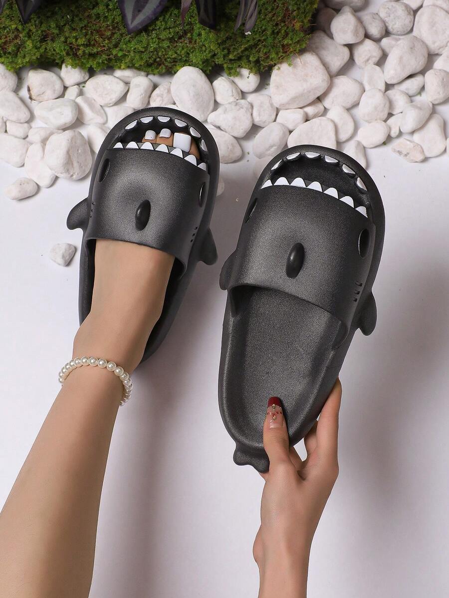 Chanclas de tiburón negras lindas para mujeres para exteriores con estilo 2024 para adultos, parejas y niños. Fabricadas en EVA, ligeras, suaves, antideslizantes y resistentes al desgaste. Adecuado para uso en el hogar. Tallas grandes disponibles. Moda de verano europea y americana. Talla 32-34 tiene un tamaño pequeño.