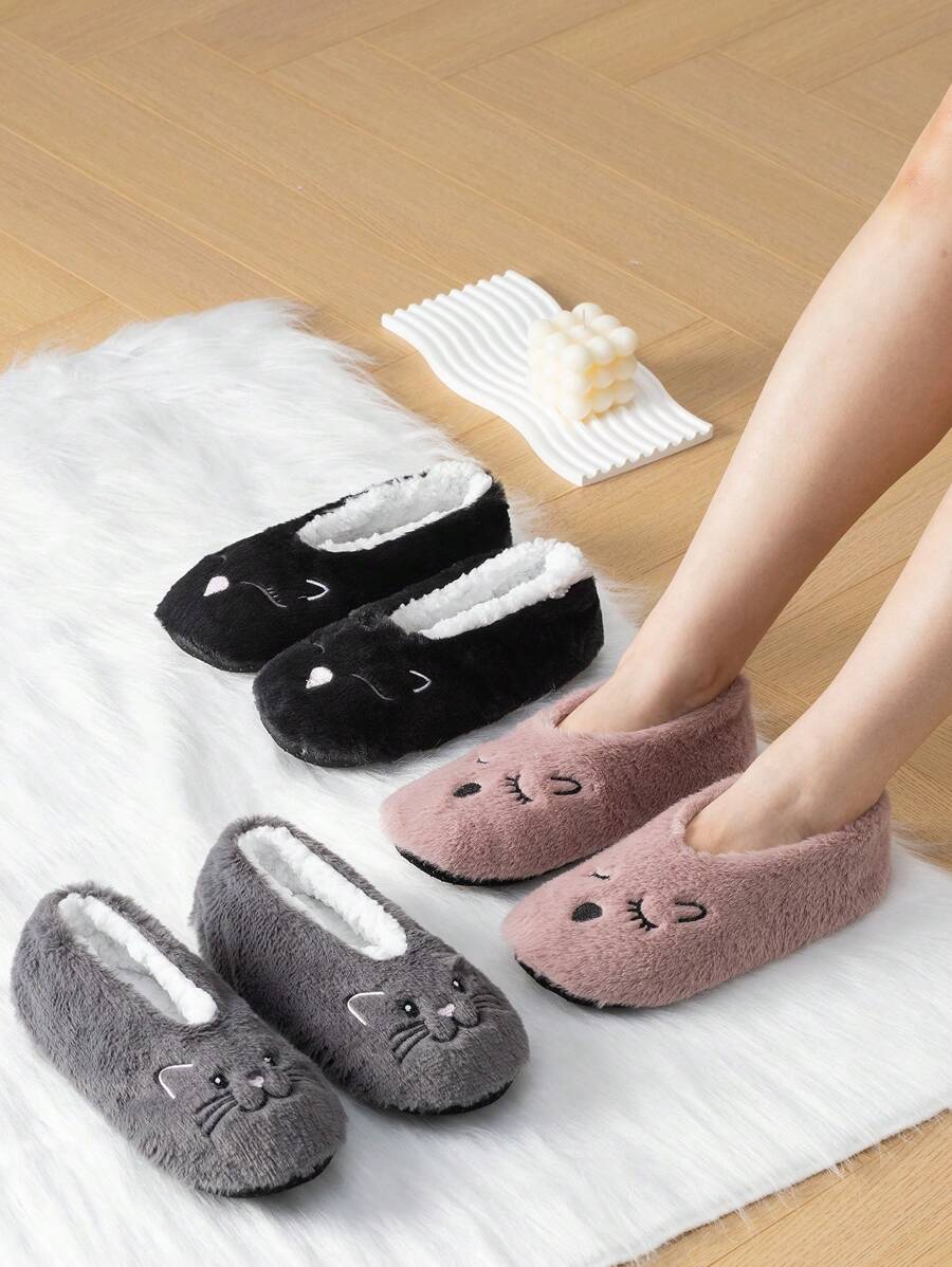 1 par de pantuflas interiores suaves con diseño de gato y suela antideslizante, calcetines de piso cálidos y silenciosos