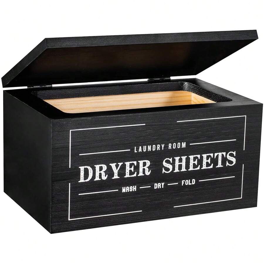 1 pieza Portador de hojas de secadora con tapa con bisagra - Dispensador de hojas de secadora de estilo rústico y granja para la decoración de la sala de lavado, dispensador de suavizante de tela para la organización/almacenamiento de lavandería, base antideslizante, soporte para servilletas de mesa, contenedor de pañuelos, tocadores, accesorios de baño, soporte para papel higiénico, soporte para rollos de papel higiénico, caja de pañuelos, soporte para pañuelos, cubierta para caja de pañuelos, caja de papel de seda, soporte para pañuelos, soporte para pañuelos de baño, soporte para pañuelos, soporte para toallas de papel, decoración de habitaciones, soporte para toallas de papel de pared, artículos indispensables para el hogar, rollo de toallas de papel, artículos para el hogar, mesa, decoraciones para el hogar, organización y almacenamiento para el hogar, decoración de la habitación, decoración de la habitación, accesorios de cocina, herramientas de cocina, organizador de cocina