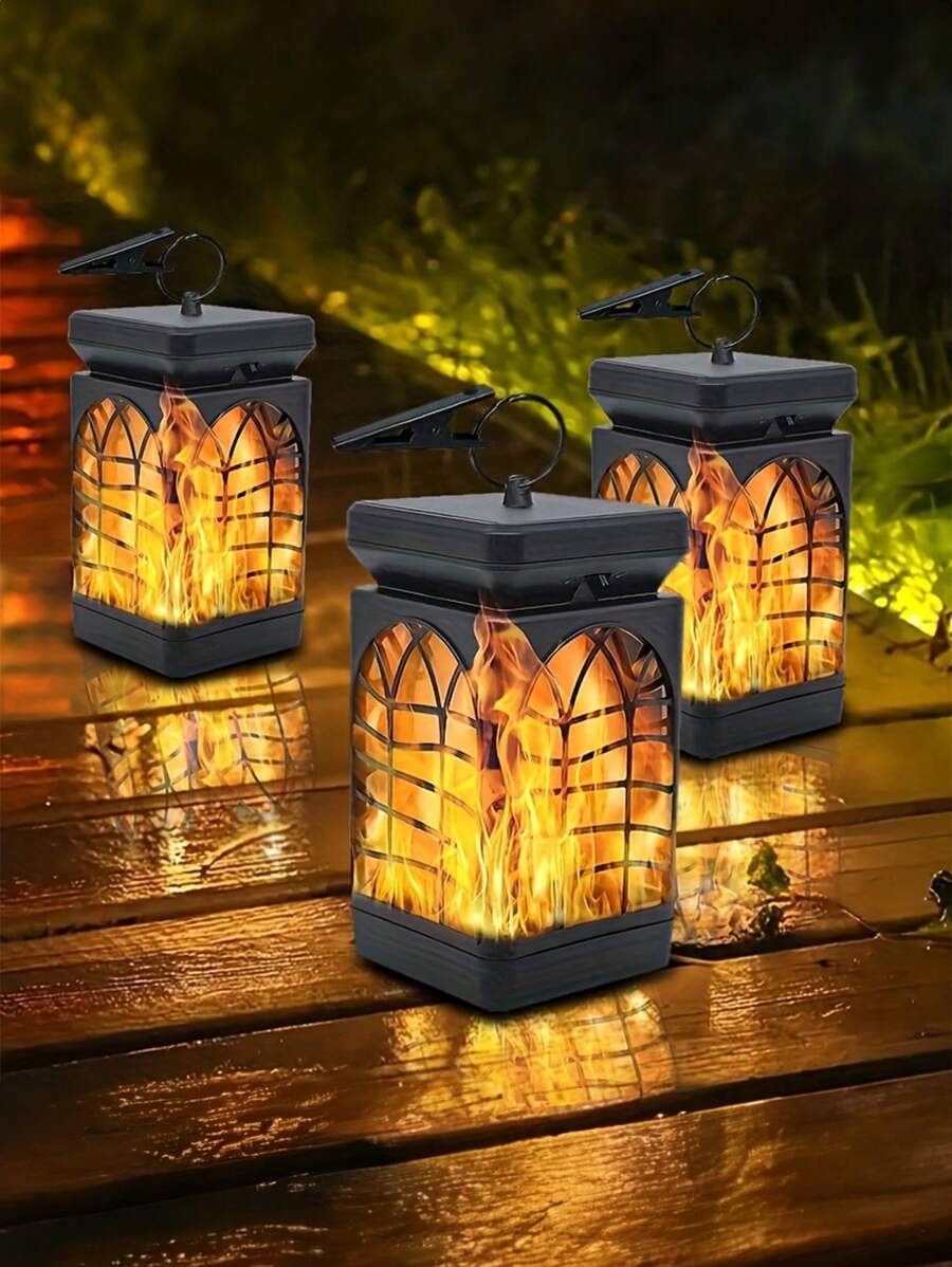 Set de 2/4 piezas Farol Solar, Luces solares exteriores IP65 a prueba de agua con llama parpadeante, decoración de Halloween, Mini luz solar colgante para jardín, patio, césped