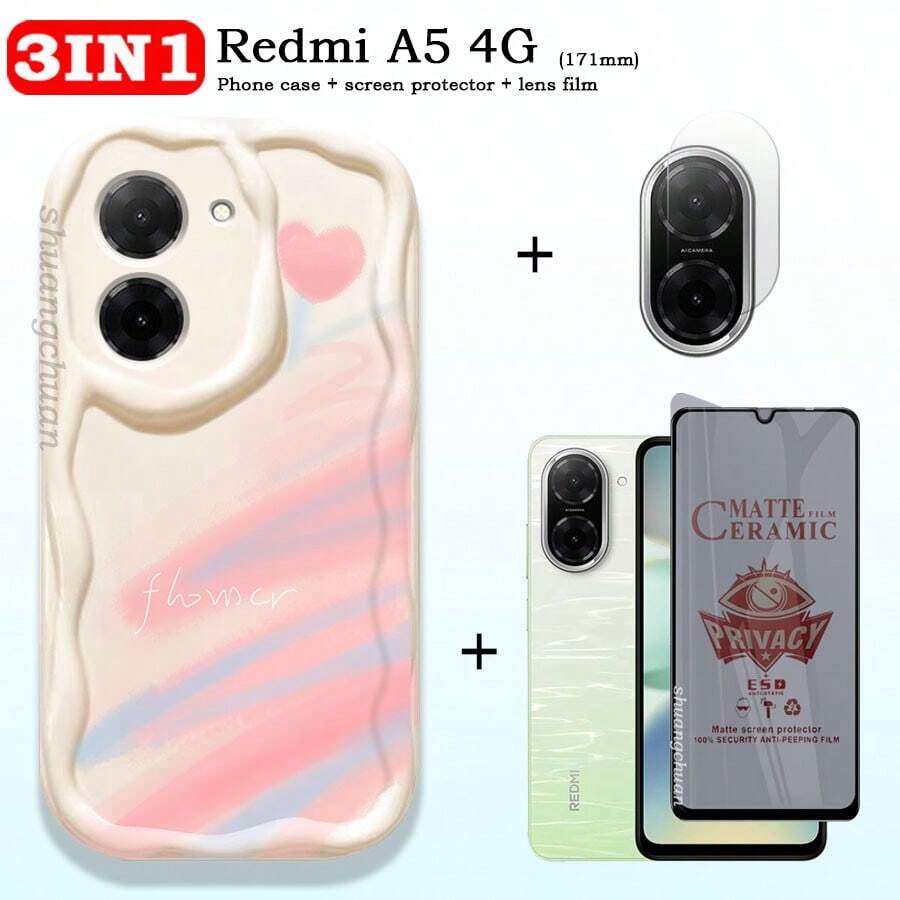Protector de pantalla 3 en 1 para Redmi A5 - Película cerámica mate, película de privacidad, película para lente de cámara; Funda de gel 2 en 1 Dopamine para Redmi A5