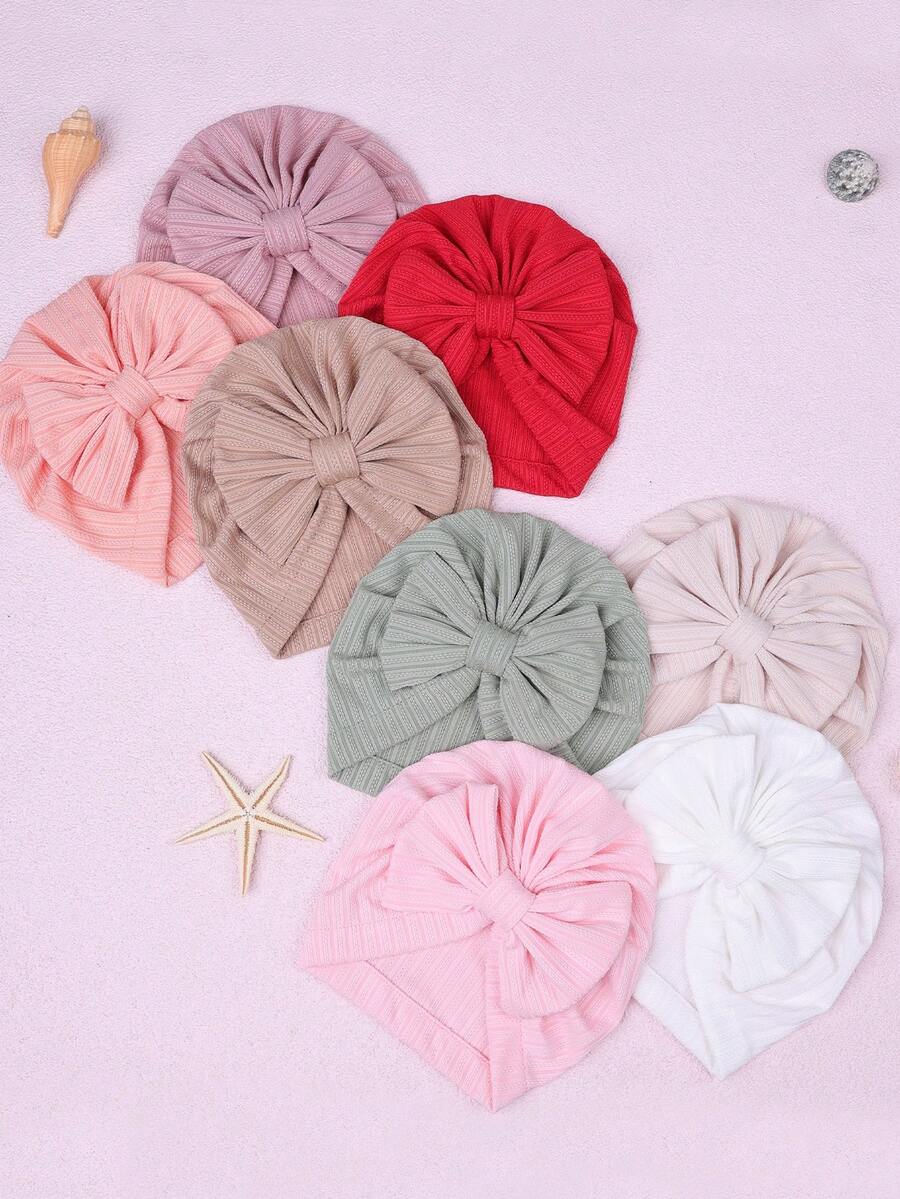 8 sombreros lindos de colores de caramelo para todas las estaciones, gorro con diadema bordada con adorno de lazo, adecuado para bebés de 1 a 12 meses, diadema para bebés recién nacidos niñas y niños, tejido elástico cosido a mano, decoración linda para productos de bebé