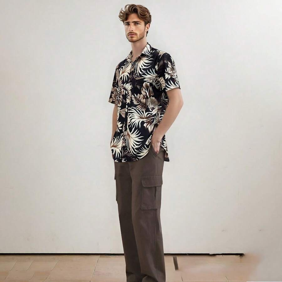 Camisa Hawaiana de Manga Corta para Hombres: Estampado Floral de Moda Verano