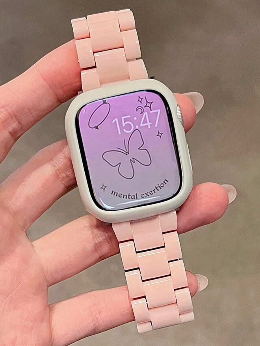Carcasa de reloj de silicona suave con estampado de estrellas + Correa de reloj de plástico acrílico, compatible con Apple 42mm 46mm 41mm 38mm 40mm 42mm 44mm 45mm 49mm, estilo japonés/coreano ultradelgado para mujer, compatible con IWatch Series 10 9 8 SE 7 6 5 4 3, conjunto de correas deportivas de unicolor minimalista